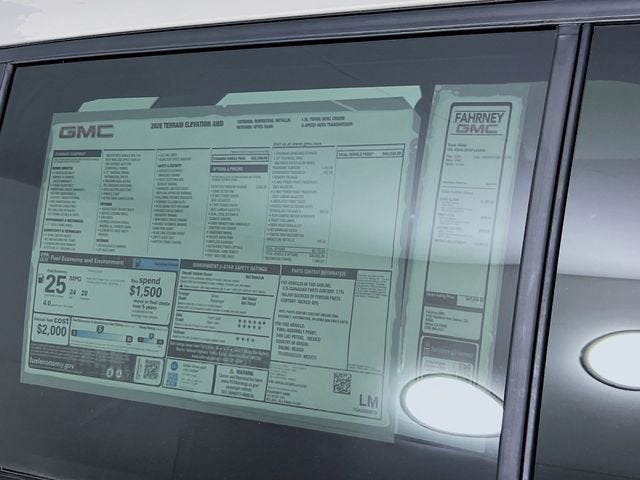 GMC 24/28 City/Highway MPG 24/28 City/Highway MPG Riverstone Metallic Dealer Discount of $1,503 off MSRP Recent Arrival! Elevation Terrain AWD. AWD 1.5L DOHC 8-Speed Automatic with OverdriveServing Selma, Hanford, Visalia, Fresno, Sanger, Fowler, Lemoore, Kingsburg, Tulare, Clovis, Madera, Porterville, Dinuba, Caruthers, Fresno County, Kings County, Tulare County, Madera County. 2026 Price does not include tax, title, or dealer doc fee. Price does not include any dealer added accessories. Customer may qualify for additional rebates. Subject to availability. On Approved Credit$1000 - Buick GMC Bonus Cash. Exp. 03/31/2026