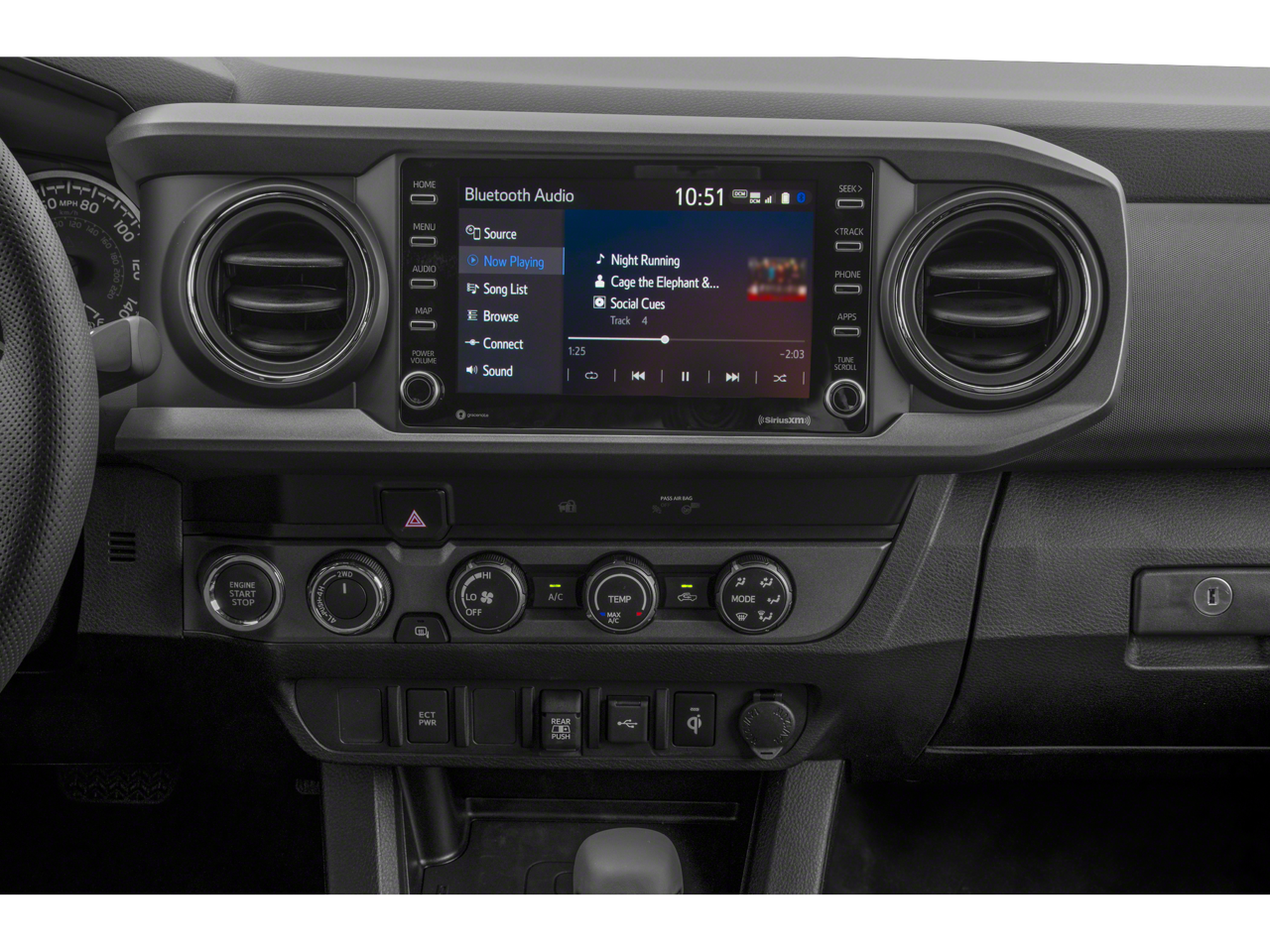 Inside, the Tacoma balances its rugged exterior with a cabin built for modern convenience. Even in the middle of nowhere, you’re always connected: