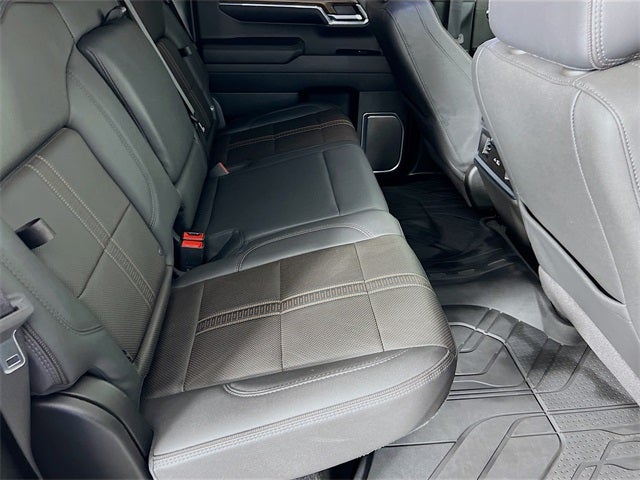 The High Country trim elevates the Silverado's already bold presence with exclusive design elements. Its body-color bumpers and mirror caps create a cohesive, premium look, while the distinctive 20-inch machined aluminum wheels with all-terrain tires strike the perfect balance between sporty aesthetics and functional grip. The signature chrome grille and unique badging instantly announce its top-tier status. Inside, you're greeted by an interior that rivals luxury sedans, featuring authentic open-pore wood trim, premium perforated leather seats with custom stitching, and plush carpeted flooring. Heated front and rear outboard seats, along with ventilated front seats, ensure year-round comfort for all occupants.